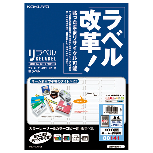 LBP&PPC用紙ラベル<リラベル> A4 100面 20枚 LBP-80141