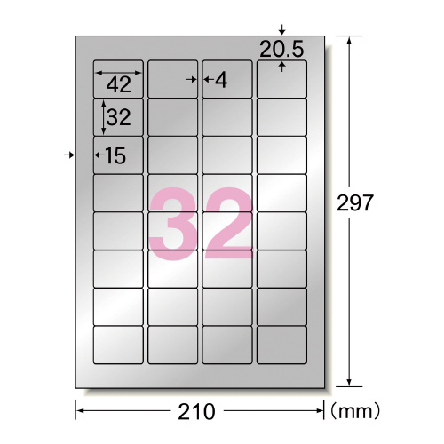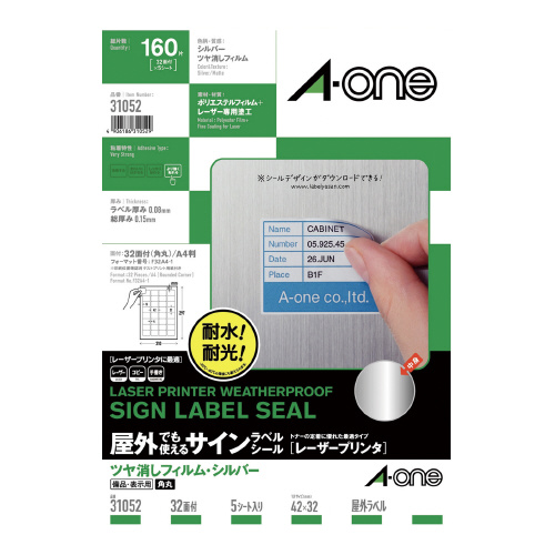 屋外でも使えるサインラベルシール シルバーツヤ消しフィルム 32面 5枚