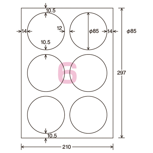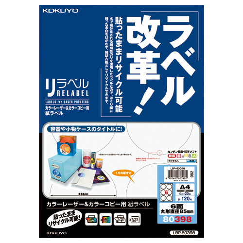 LBP&PPC用紙ラベル<リラベル> 6面丸型 20枚