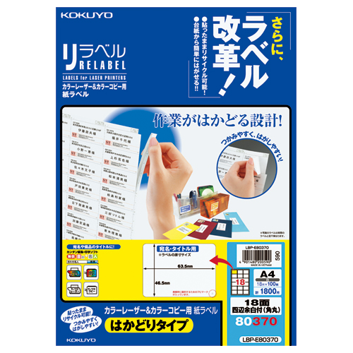 カラーLBP&コピー用ラベル リラベル 18面四辺余白付(角丸) 100枚入