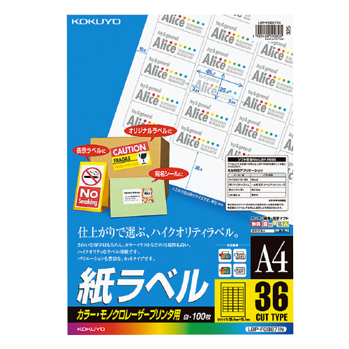 LBP用紙ラベル カラー&モノクロ対応 A4 100枚入 36面カット