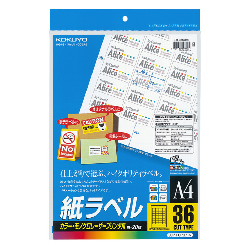 LBP用紙ラベル カラー&モノクロ対応 A4 20枚入 36面カット