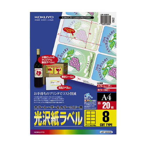 カラーLBP&コピー用光沢紙ラベル A4 20枚入 8面カット