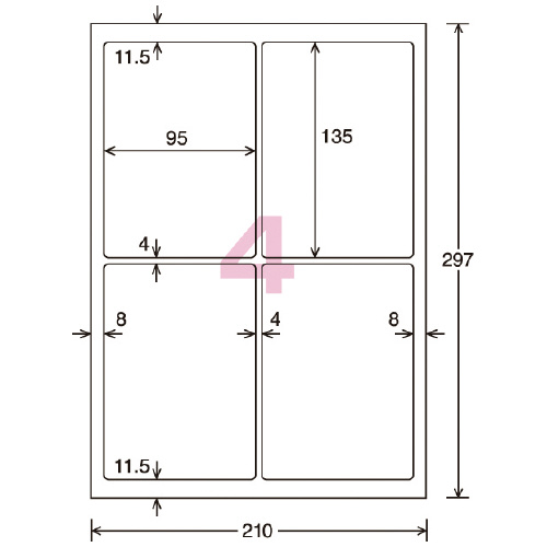 カラーLBP用 超耐水紙ラベル A4 15枚入 4面カット