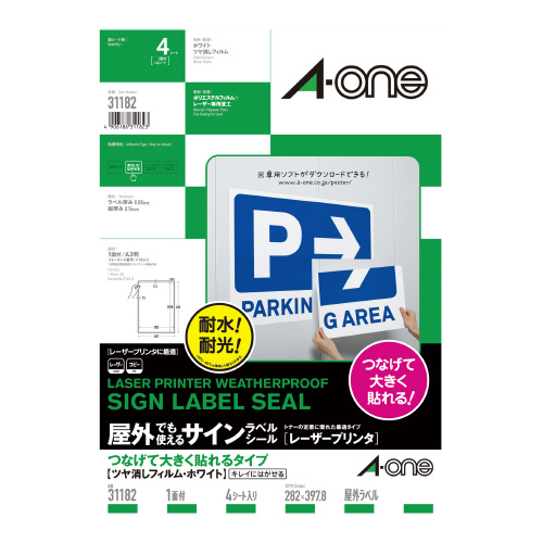 エーワン つなげて大きく貼れる A3 ツヤ消しフィルムホワイト1面 4シート入