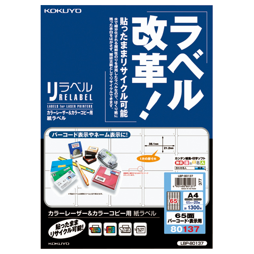 LBP&PPC用紙ラベル<リラベル> A4 65面 20枚