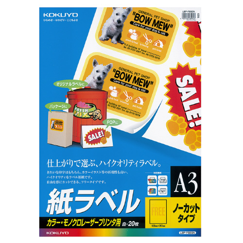 LBP用紙ラベル カラー&モノクロ対応 A3 20枚入 ノーカット