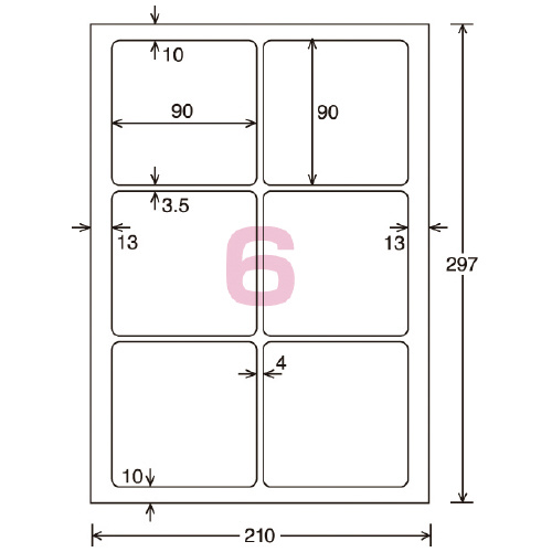 カラーLBP&PPC用光沢紙ラベル A4 6面 90X90 20枚