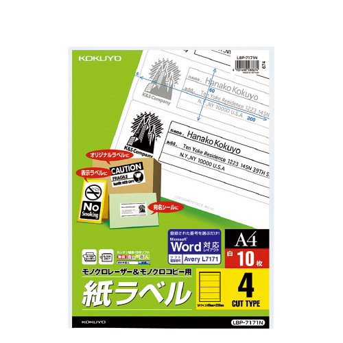 モノクロレーザー用紙ラベル A4 10枚入 4面カット