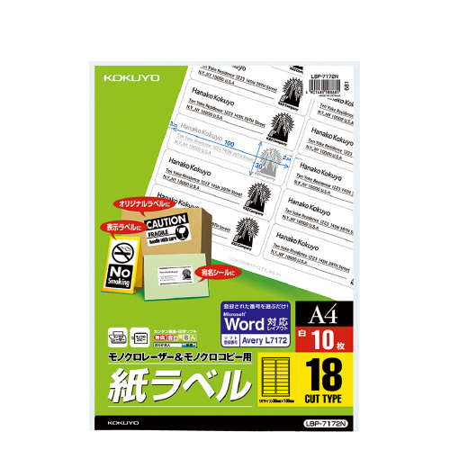 モノクロレーザー用紙ラベル A4 10枚入 18面カット