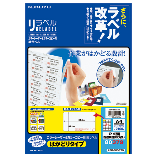 カラーLBP&コピー用ラベル リラベル 21面四辺余白付(角丸) 100枚入