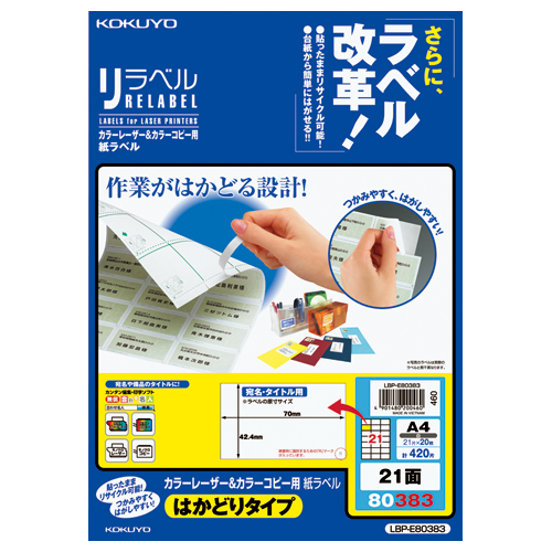 カラーLBP&コピー用ラベル リラベル 21面 20枚入