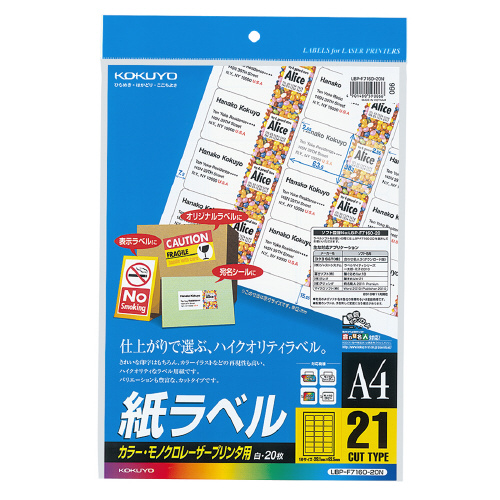 LBP用紙ラベル カラー&モノクロ対応 A4 20枚入 21面カット