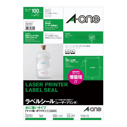 レーザープリンタ用ラベルシール 水に強いタイプ ノーカット 100枚