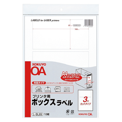 プリンタ用ボックスラベル A4 10枚入 3面カット