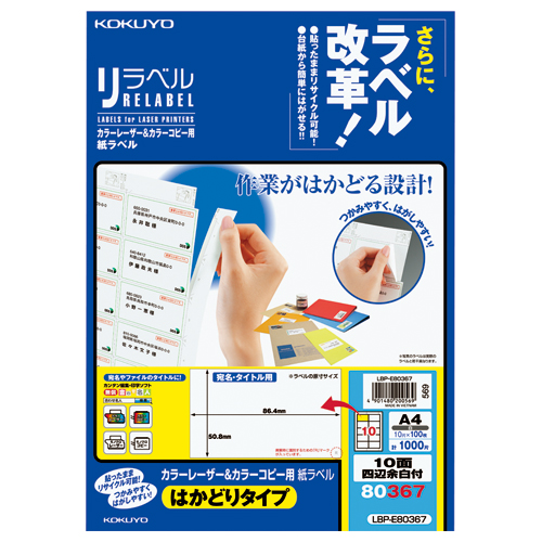 カラーLBP&コピー用ラベル リラベル 10面四辺余白付 100枚入