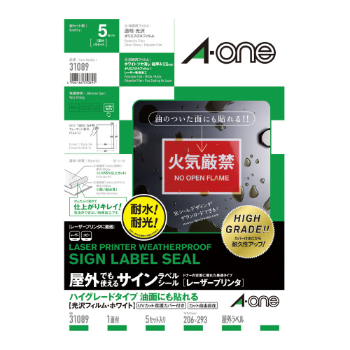 エーワン 油面にも貼れるラベルシール ハイグレードA4判ノーカット保護カバー付