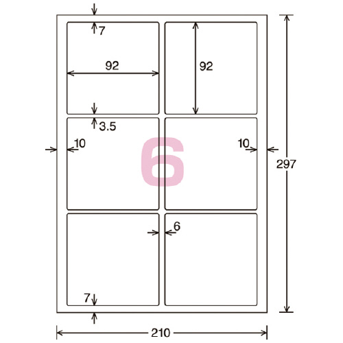 カラーLBP用 超耐水紙ラベル A4 15枚入 6面カット
