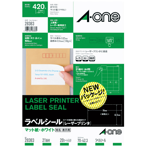 レーザープリンタ用ラベル A4 21面 20シート入