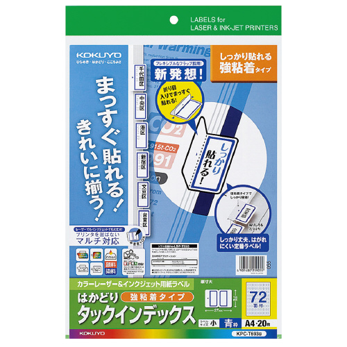 LBP&IJP用タックインデックス 強粘着 A4 72面(小) 20枚 青枠