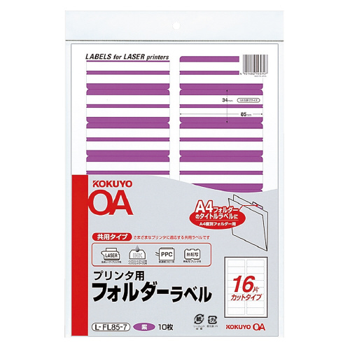 プリンタ用フォルダーラベル A4個別フォルダー用 10枚入 紫