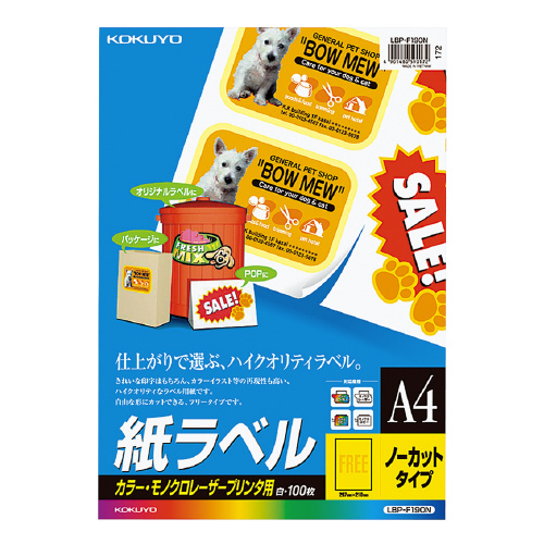 LBP用紙ラベル カラー&モノクロ対応 A4 100枚入 ノーカット