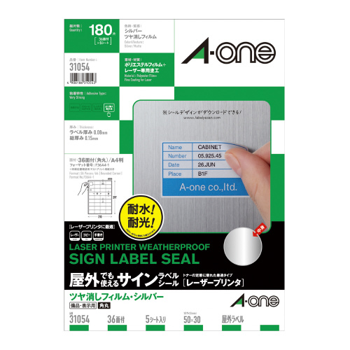 屋外でも使えるサインラベルシール ツヤ消しフィルム・シルバー備品・表示用