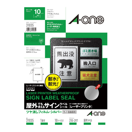 屋外でも使えるサインラベルシール レーザーP つや消しフィルム・シルバー