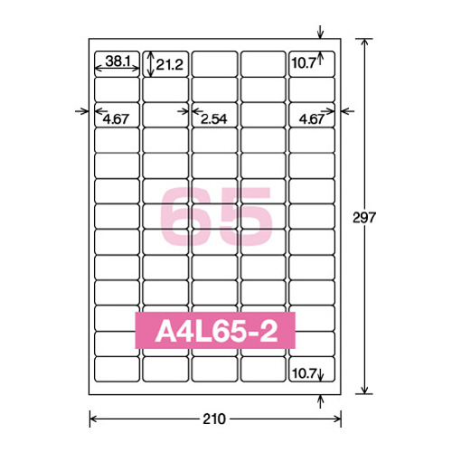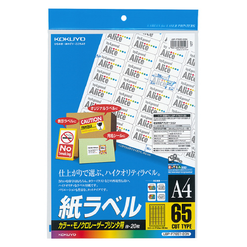 LBP用紙ラベル カラー&モノクロ対応 A4 20枚入 65面カット