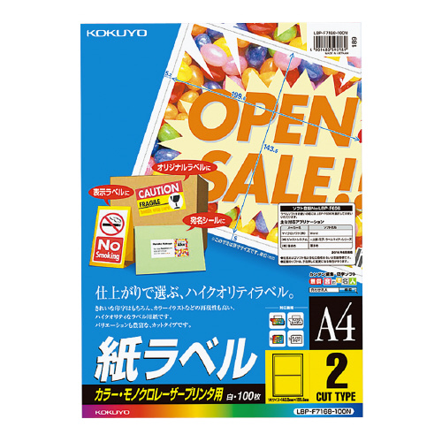 LBP用紙ラベル カラー&モノクロ対応 A4 100枚入 2面カット