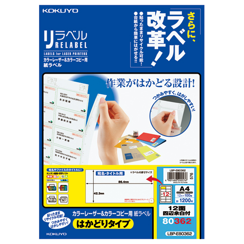 カラーLBP&コピー用ラベル リラベル 12面四辺余白付 100枚入