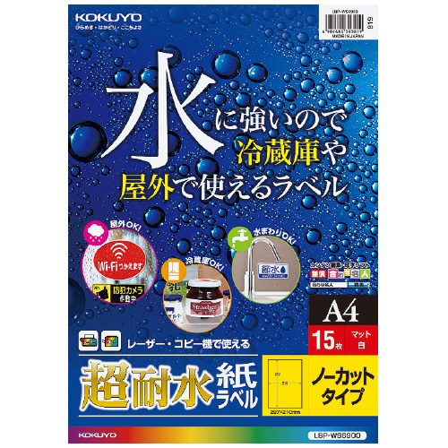 カラーLBP用 超耐水紙ラベル A4 15枚入 ノーカット