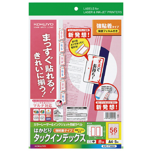 LBP&IJP用タックインデックス 保護フィルム付 A4 56面 5枚 赤枠