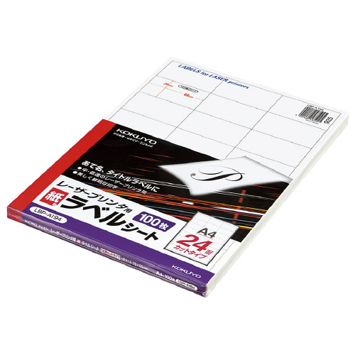 モノクロレーザープリンタ用紙ラベル A4 100枚入 24面カット