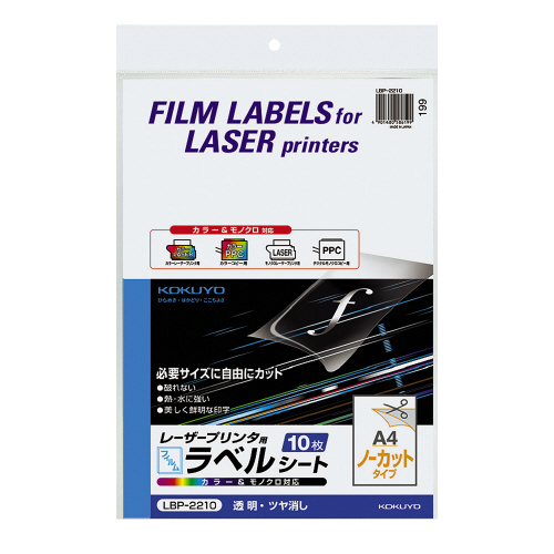 カラーLBP&コピー用フィルムラベル 10枚入 ノーカット 透明 ツヤ消し