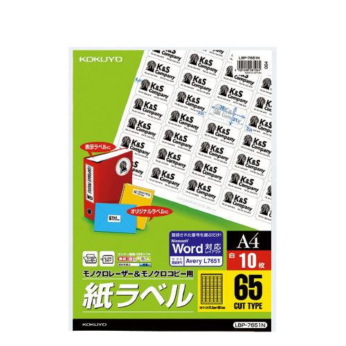 モノクロレーザー用紙ラベル A4 10枚入 65面カット