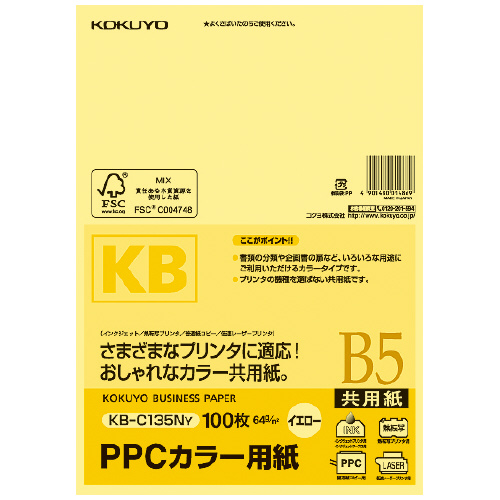 PPCカラー用紙(共用紙) FSC認証 B5 100枚 64g平米 黄