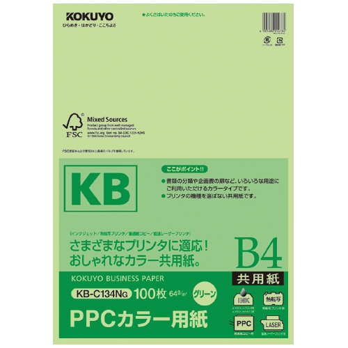 PPCカラー用紙(共用紙) FSC認証 B4 100枚 64g平米 緑