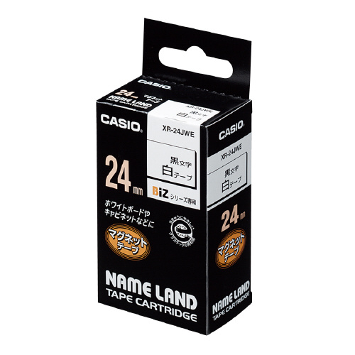 ネームランド テープカートリッジ マグネットテープ 白に黒文字24ミリ幅 XR-24JWE