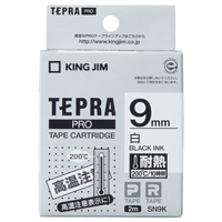 テプラPROテープカートリッジ 耐熱ラベル 白に黒文字 9mm幅×2m SN9K