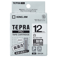 テプラPROテープカートリッジ 耐熱ラベル 白に黒文字 12mm幅×2m SN12K