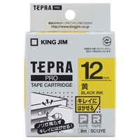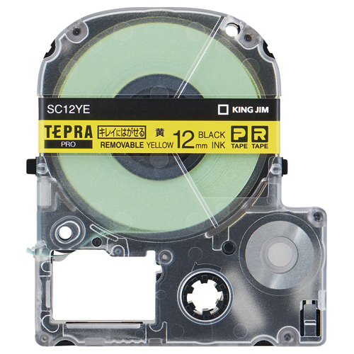 テプラPROテープカートリッジ キレイにはがせる 黄に黒文字 12mm幅 SC12YE