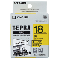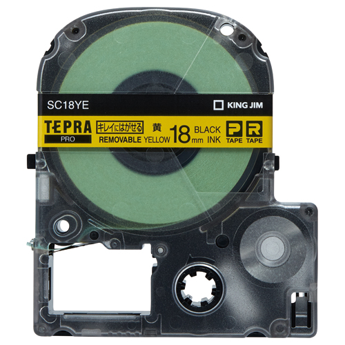 テプラPROテープカートリッジ キレイにはがせる 黄に黒文字 18mm幅 SC18YE