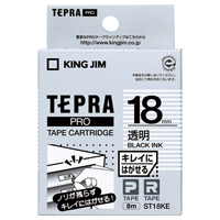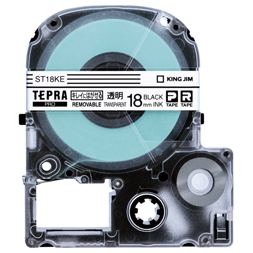 テプラPROテープカートリッジ キレイにはがせる 透明に黒文字18mm幅 ST18KE