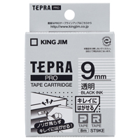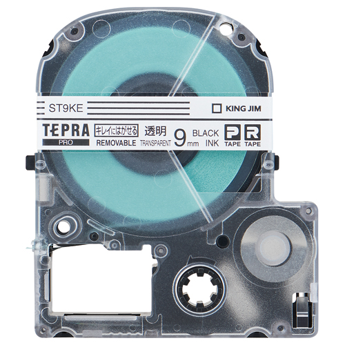 テプラPROテープカートリッジ キレイにはがせる 透明に黒文字 9mm幅 ST9KE