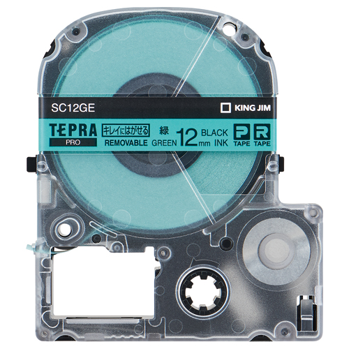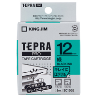 テプラPROテープカートリッジ キレイにはがせる 緑に黒文字 12mm幅 SC12GE
