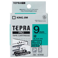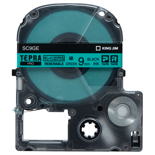 テプラPROテープカートリッジ キレイにはがせる 緑に黒文字 9mm幅 SC9GE