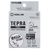 テプラPROテープカートリッジ マットラベル 透明に白文字9mm幅×8m SB9TS