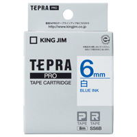テプラPROテープカートリッジ 白ラベル 白に青文字 6mm幅×8m SS6B