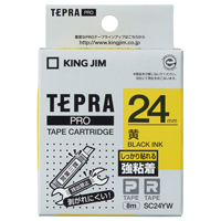 テプラPROテープカートリッジ 強粘着ラベル 黄に黒文字24mm幅×8m SC24YW